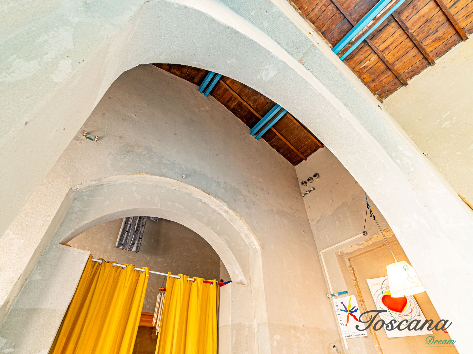 Il progetto di recupero è stato eseguito con grande sensibilità e rispetto per l’anima originaria dell’edificio. Le pareti sono state lasciate a grezzo, i soffitti conservano i travi originali in castagno, le antiche nicchie e persino gli isolatori in porcellana d’epoca sono stati valorizzati. Ogni dettaglio racconta la storia autentica di questo luogo unico, visibile a 360 gradi.