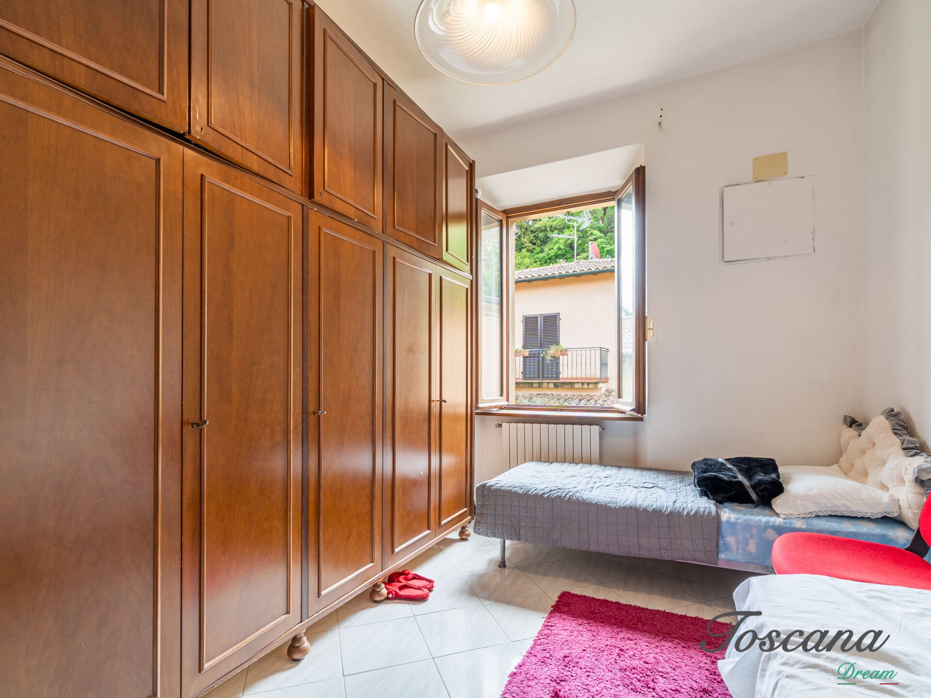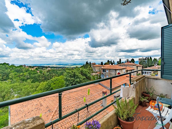 La casa offre un’atmosfera rilassata e luminosa, resa ancora più speciale da un ampio balcone panoramico che si affaccia sulla splendida campagna toscana e sul profilo del centro storico: un vero spettacolo per gli occhi, che cambia con le stagioni e regala emozioni ogni giorno.