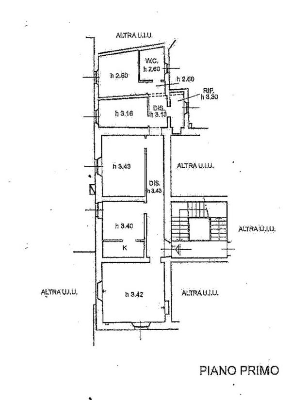 Primo piano: soggiorno, cucina, tre camere da letto, lavanderia, bagno.