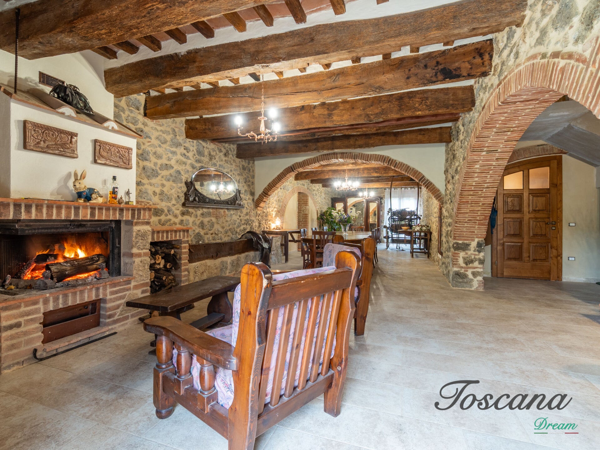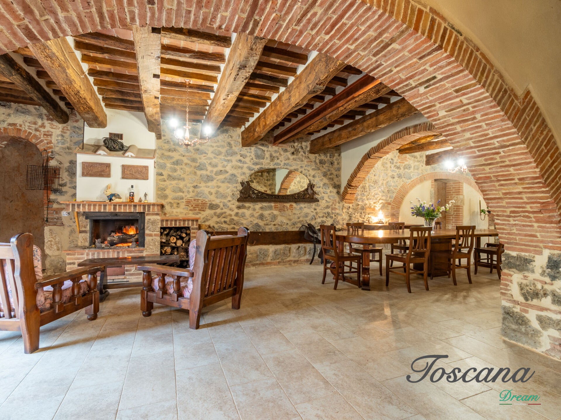 una sala comune ad uso agrituristico/ricettivo di circa 60 mq, con camino, solai in legno e cotto e pavimenti in pietra;