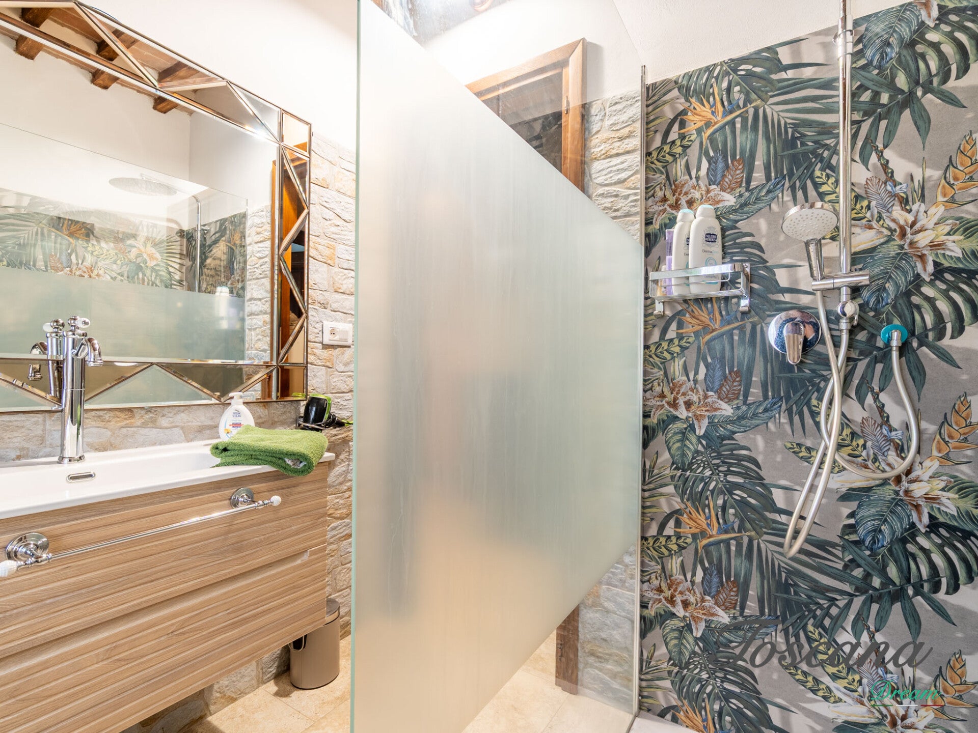 I piani superiori sono stati riorganizzati con la predisposizione di 8 camere e 8 bagni, per una superficie complessiva di circa 400 mq, ideali per attività ricettiva o suddivisione in appartamenti indipendenti.