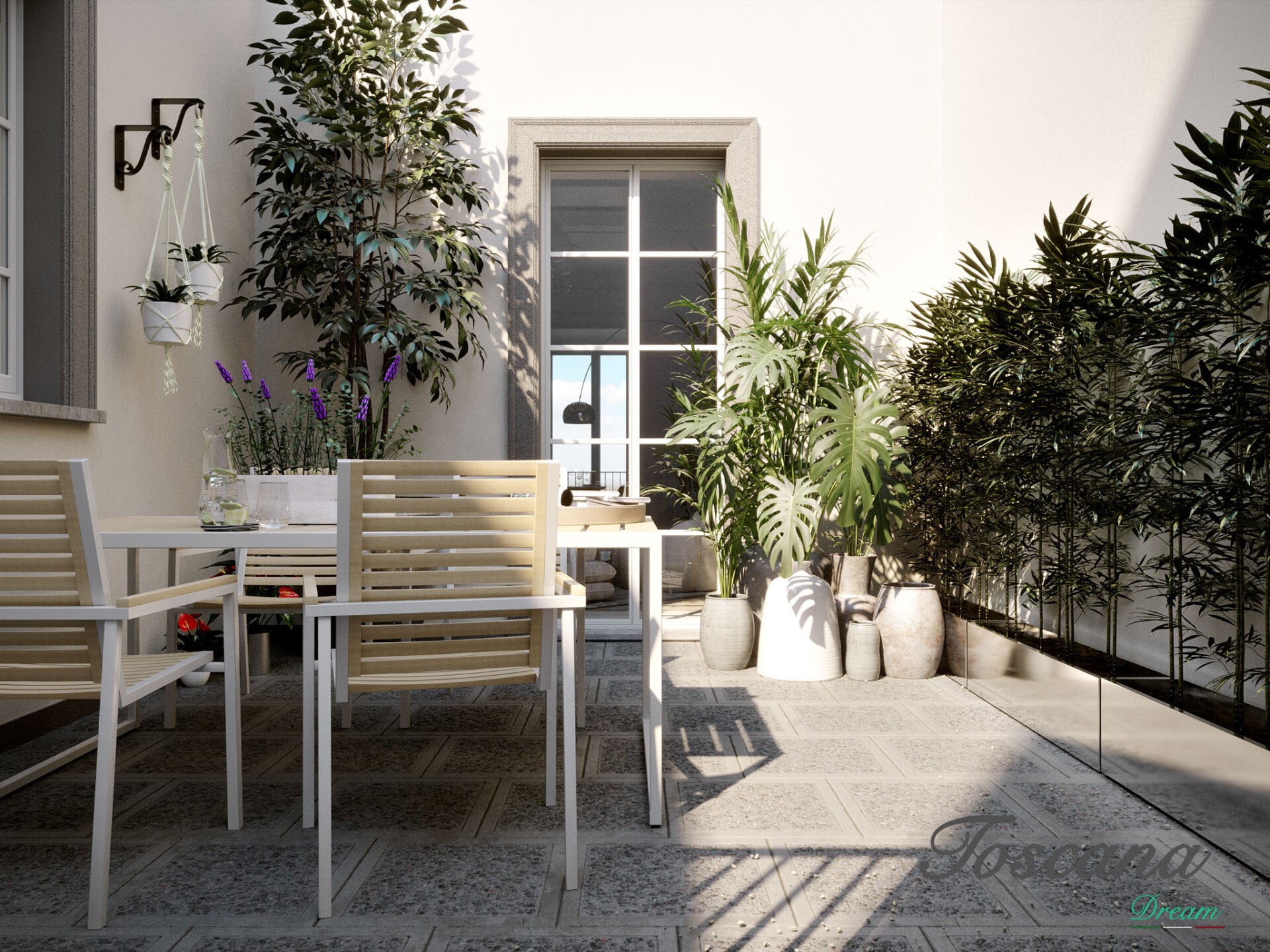 Dal living, dalla zona pranzo e dalla cucina si accede a una magnifica terrazza privata, molto ampia e riservata, perfetta per pranzi, aperitivi o momenti di relax, offrendo una continuità tra gli spazi interni e l’esterno.