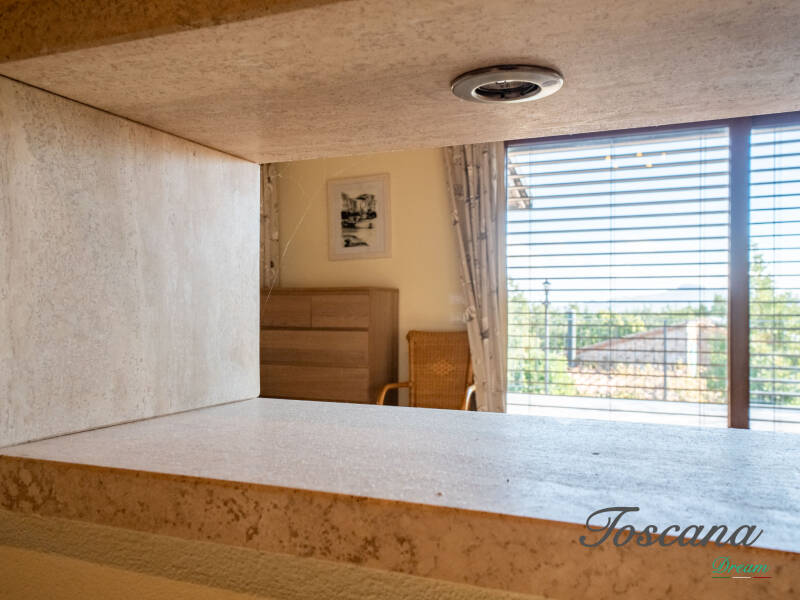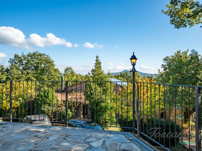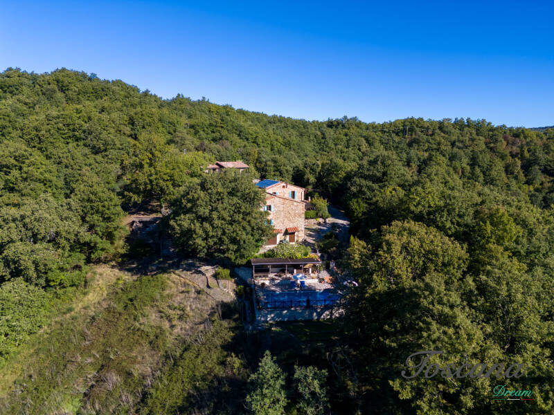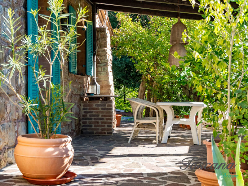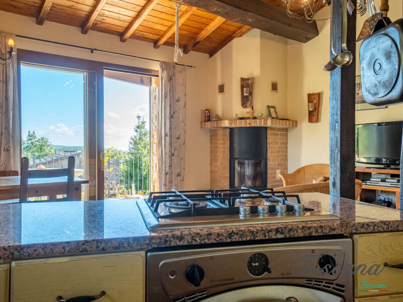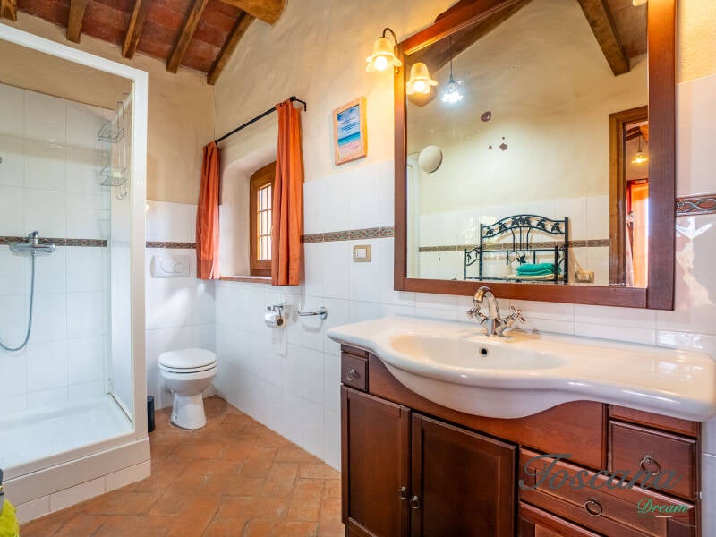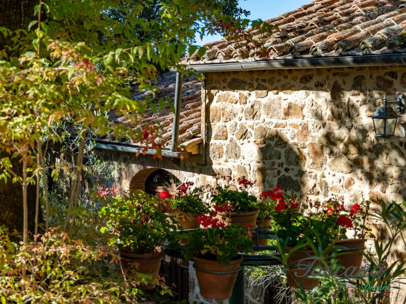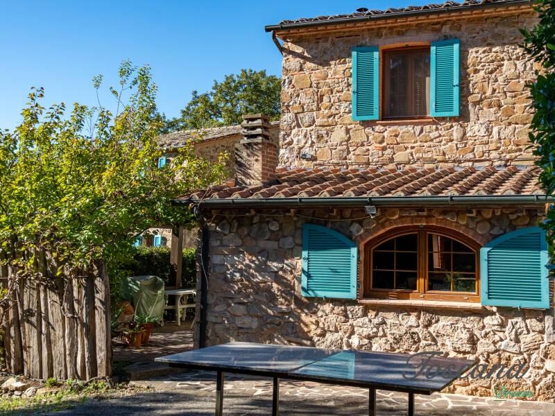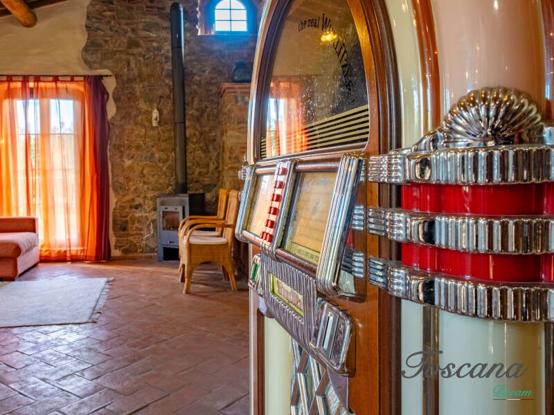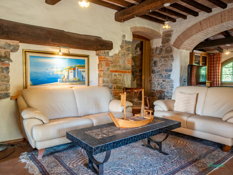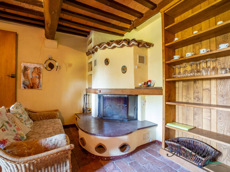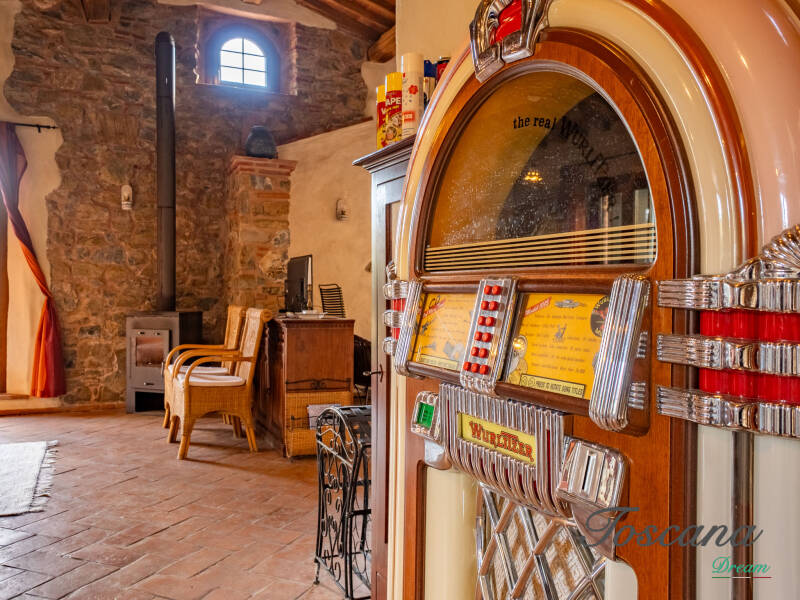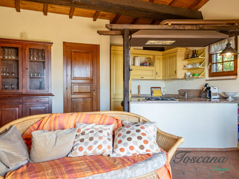 L’architettura è autenticamente toscana: muri in pietra, pavimenti in cotto, travi in legno a vista, dettagli artigianali. Una casa con anima.