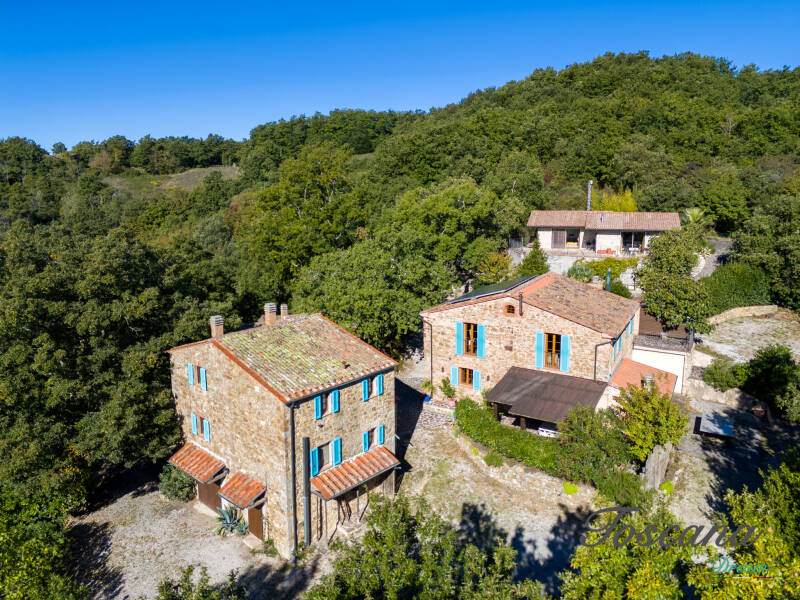 Nel cuore della natura intatta dell’alta Maremma, immersa tra boschi secolari e dolci colline, questa proprietà unica sorge in posizione dominante, con una vista libera su un paesaggio che appare immutato da cent’anni. Chi arriva qui lo percepisce all’istante: il silenzio è assoluto, l’aria cristallina, l’orizzonte infinito.