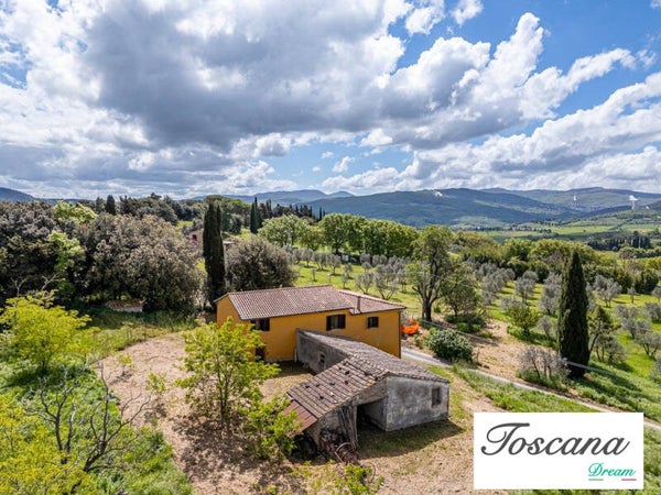 Casale toscano con vista panoramica e uliveto