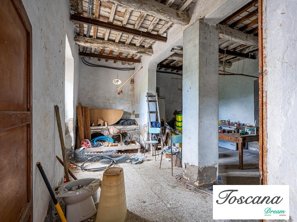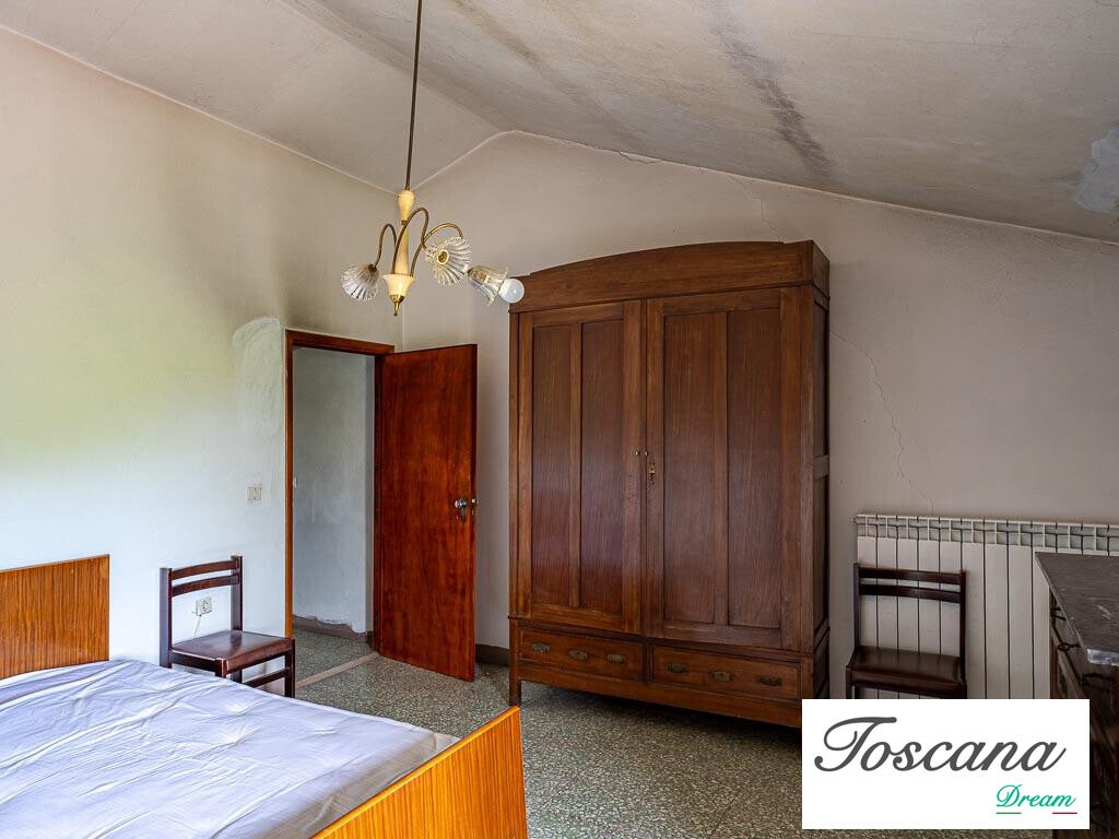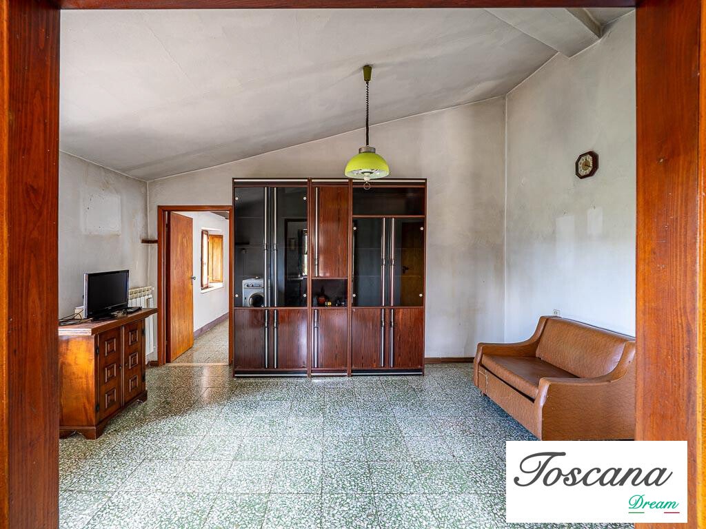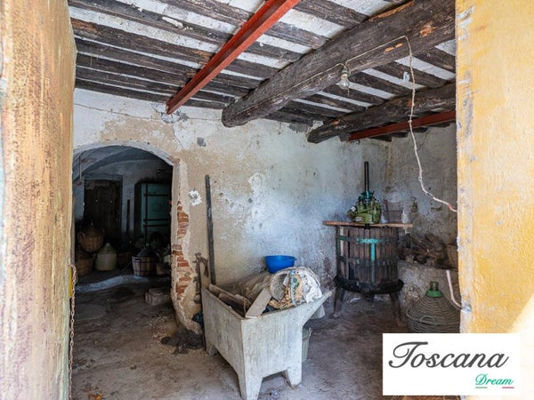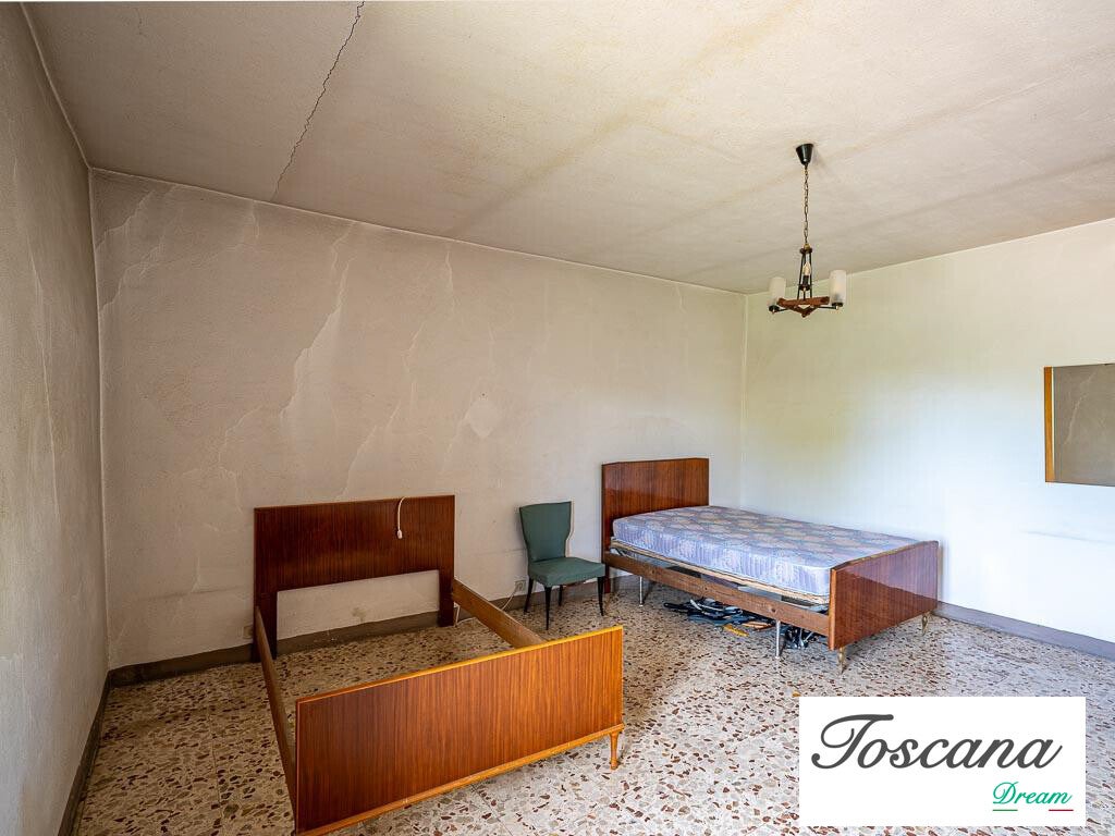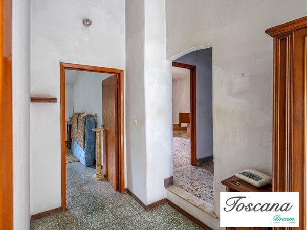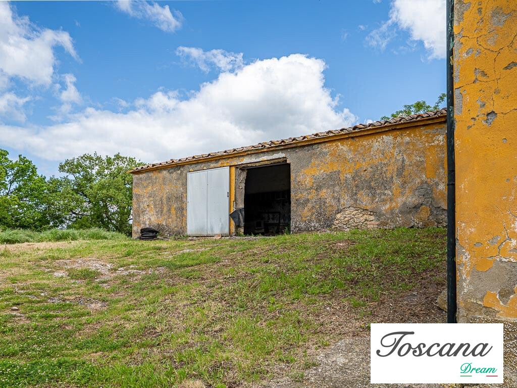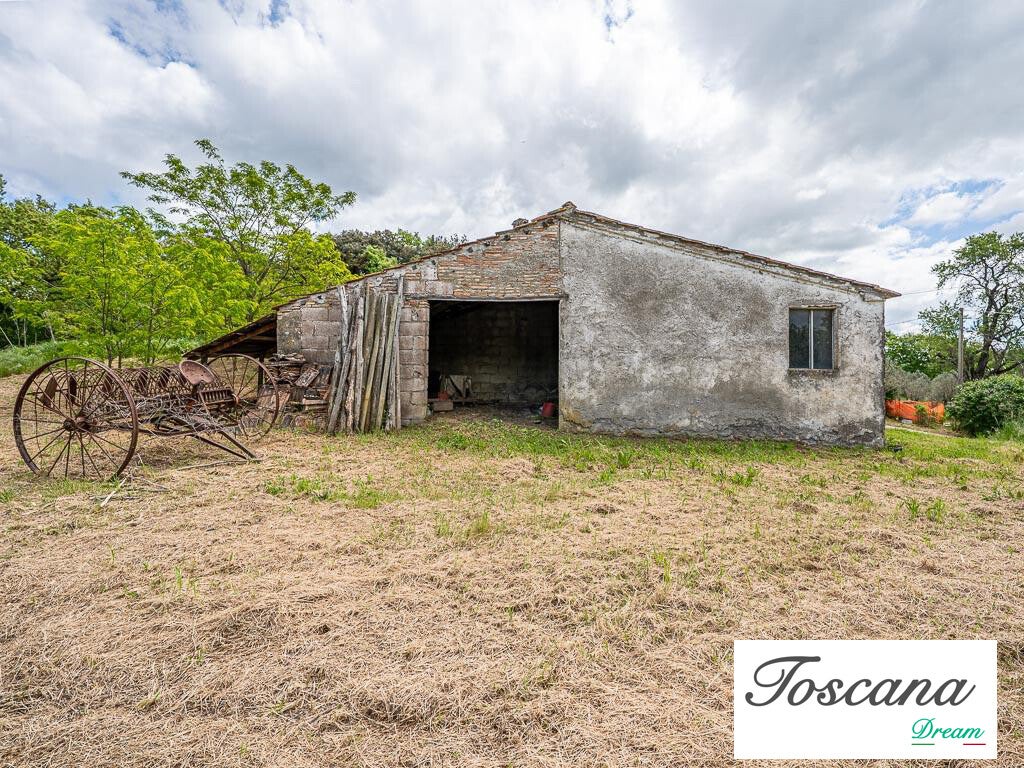 Il podere comprende un fabbricato principale su due livelli, con una superficie totale di 321 mq. La struttura solida, dalle facciate intonacate e con copertura a padiglione in laterocemento, garantisce stabilità e potenziale di sviluppo. L’accesso avviene tramite una strada vicinale privata di circa 200 metri dalla strada principale, assicurando privacy e tranquillità.