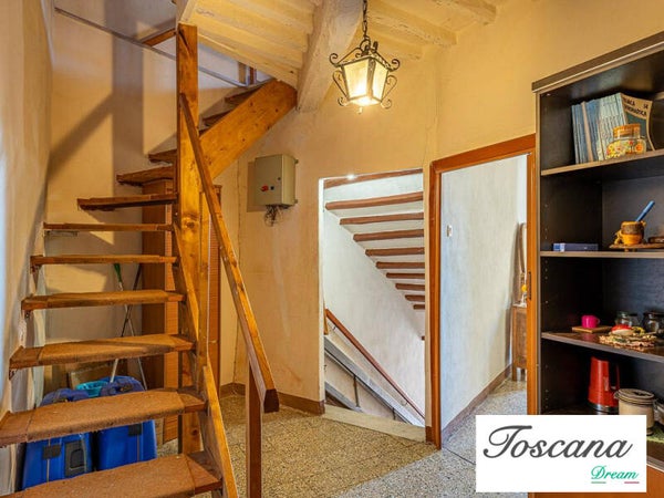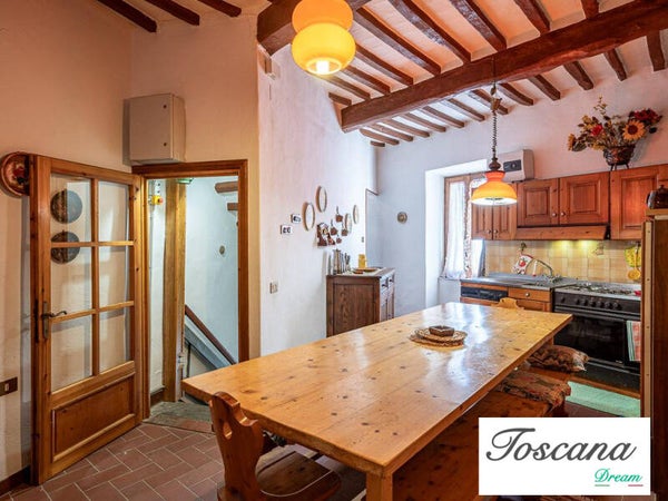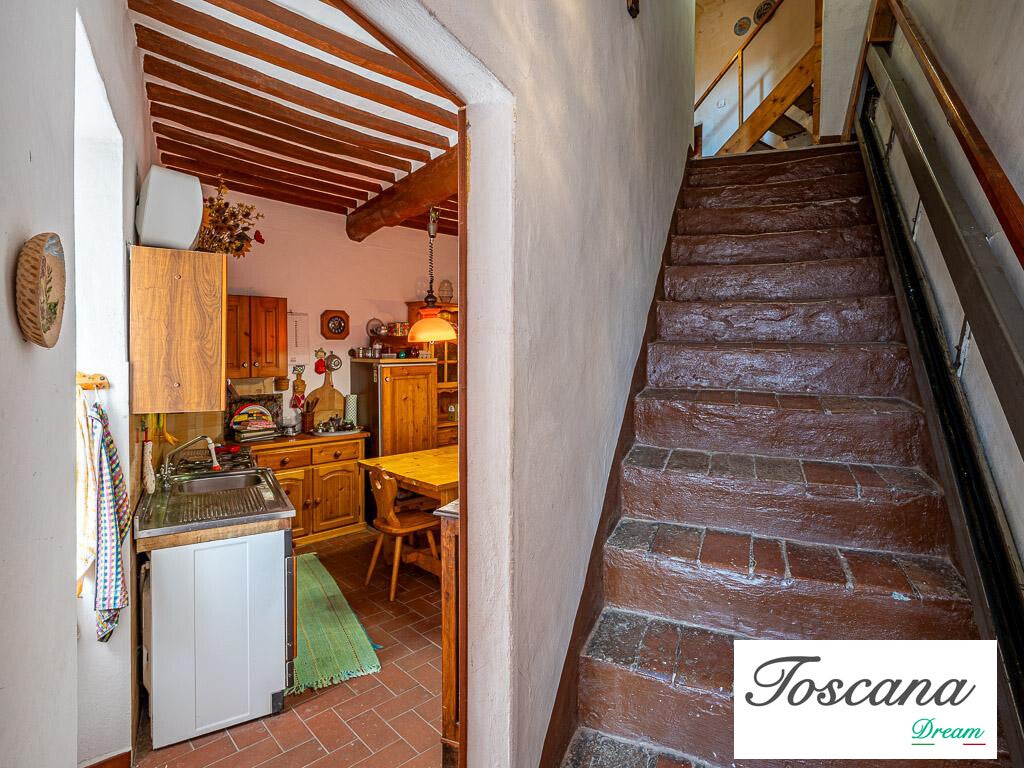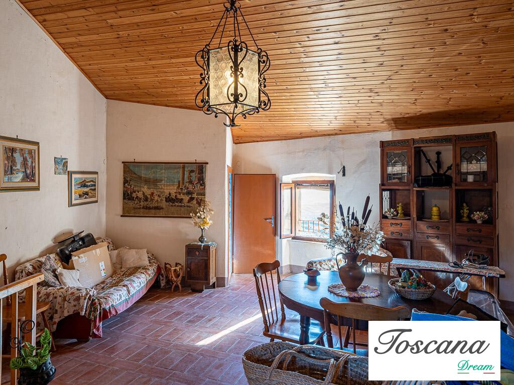 Ampio terratetto costruito nel 1905 fra due palazzi esistenti, appoggiata fino al secondo piano alla rocca degli Alberti, il terzo piano ha l’uscita sulla rocca, con un giardino di proprietà di circa 60 mq. L’immobile si trova a pochi passi dalla piazza principale in cui si trovano un alimentari e tabacchi, un bar ristorante ed un bancomat.
