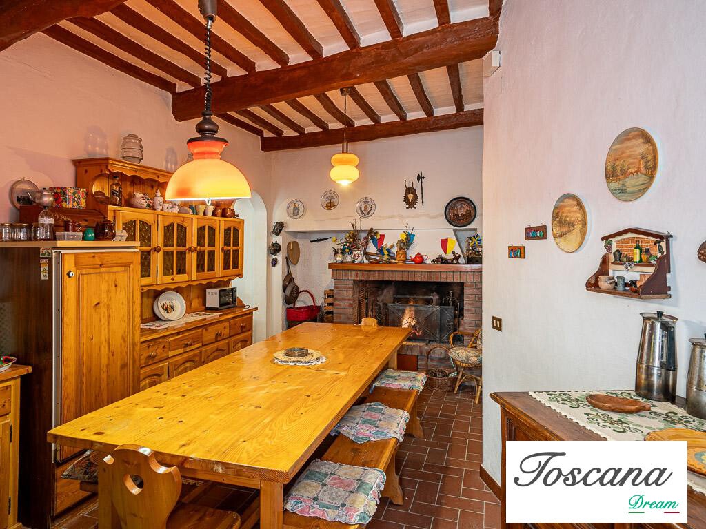 Al primo piano: una cucina abitabile con caminetto e un salotto
