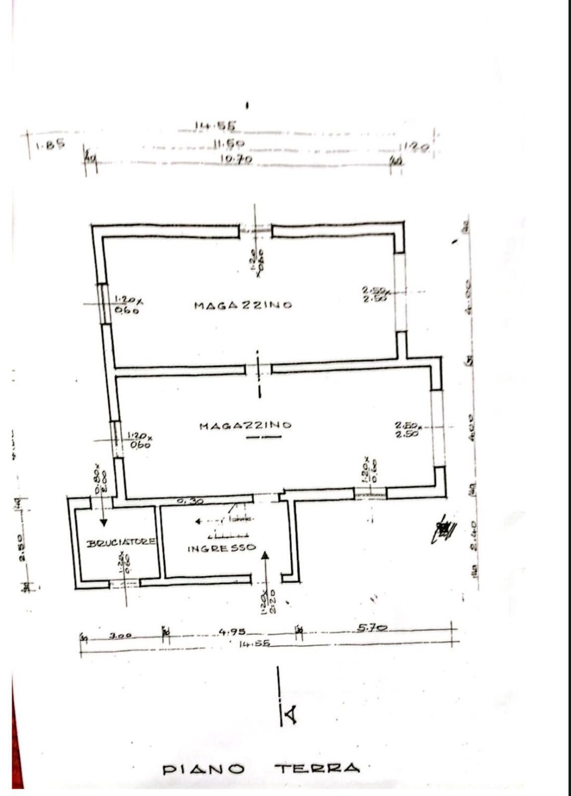 Piano terra: due ampi magazzini, stanza tecnica e ingresso.