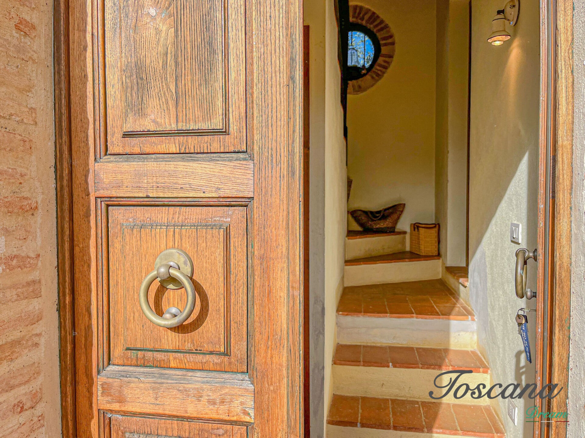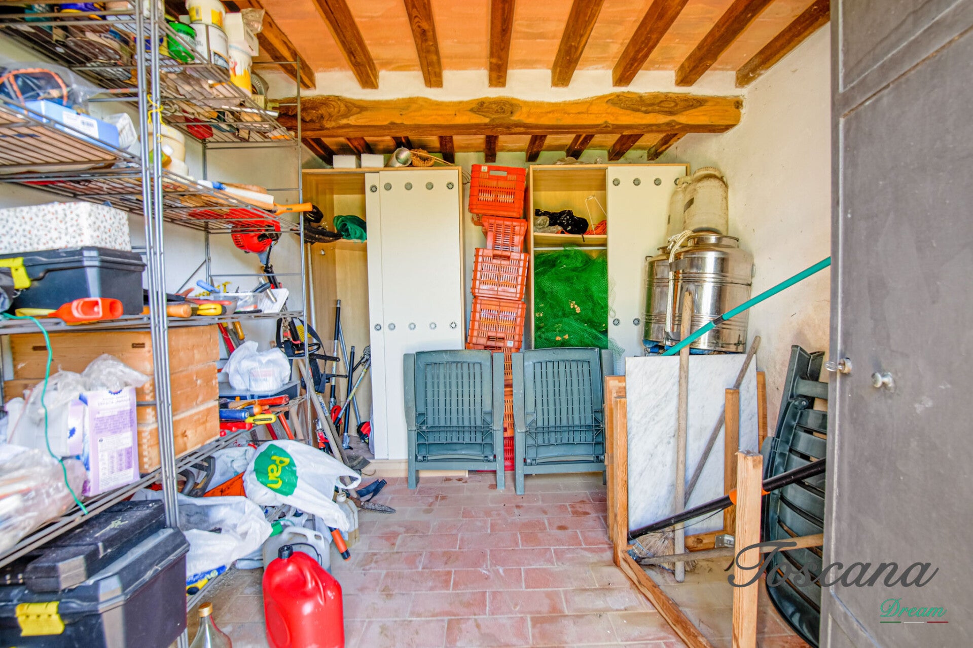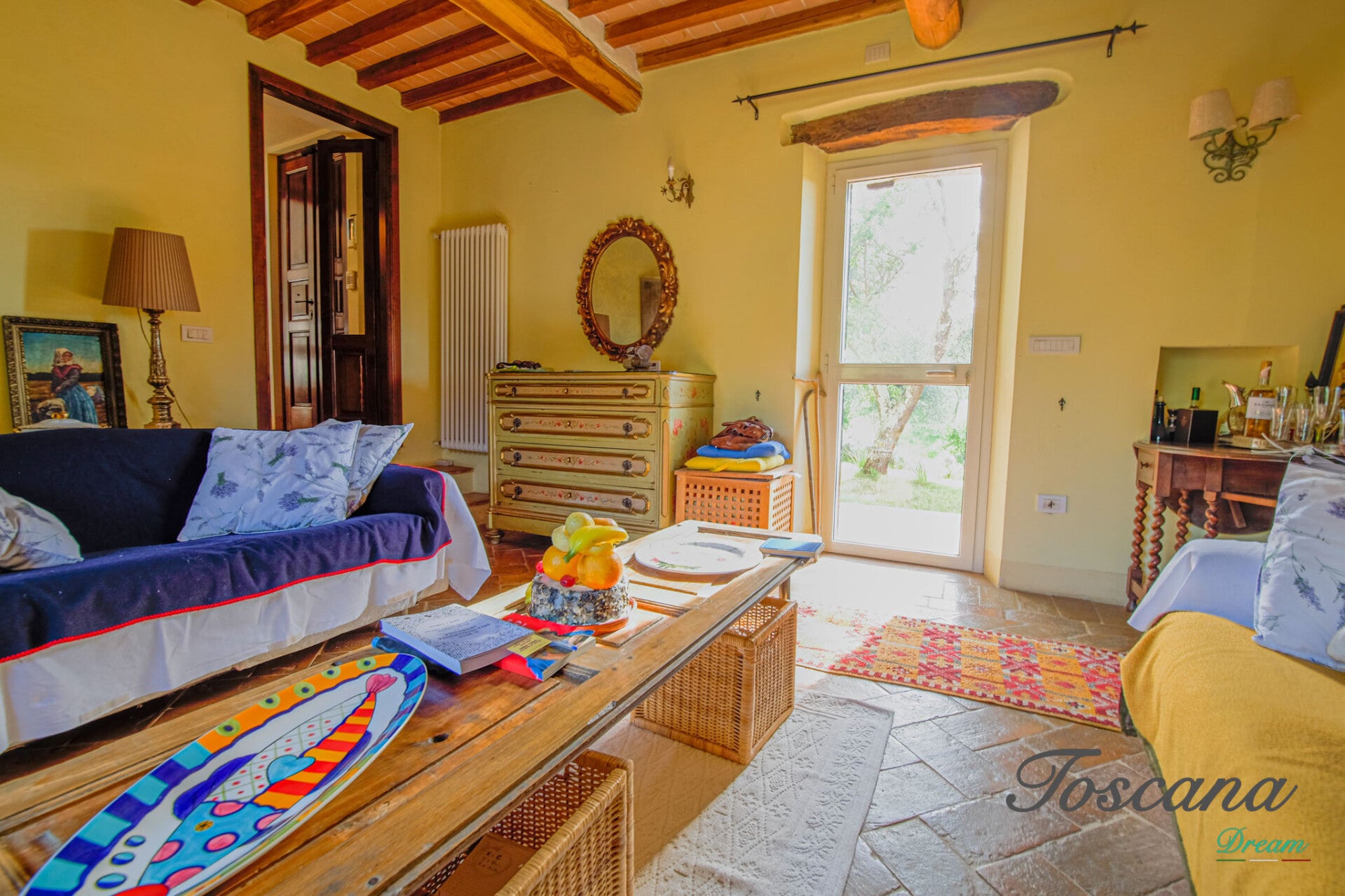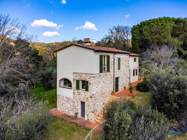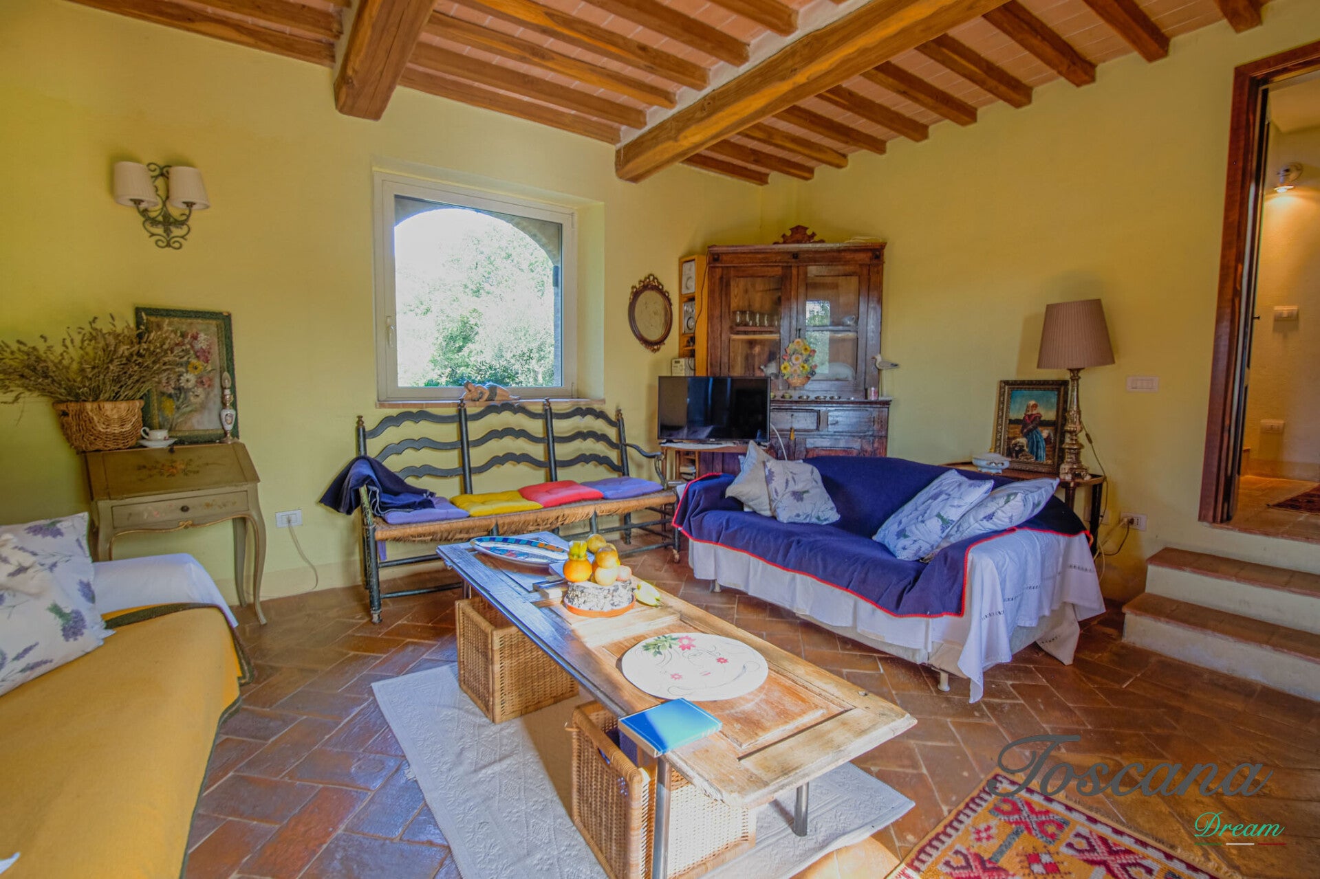 Casale al centro di un terreno di proprietà di oltre 1,5 ettari con la vegetazione tipica della regione (ulivi, querce, lecci, sugheri, pini, cipressi e giardino). L’edificio sorge sui resti di un posto di avvistamento longobardo del IX secolo del quale sono state mantenute le pietre a vista originali. Il restauro e l’ampliamento è stato effettuato nel 2004 e nel 2010 con materiali di pregio: travi di castagno, pavimenti in cotto a mano, nuovo tetto, serramenti con vetri a doppia camera, impianti elettro-idraulici moderni, riscaldamento autonomo con serbatoio GPL interrato, parziale condizionamento aria. Le strutture, sia quelle originali che quelle aggiunte, sono state soggette a consolidamento antisismico e isolamento termico secondo gli standard attuali. Insomma il fascino di un “casale d’epoca” con la solidità e la sicurezza di una casa moderna di gran qualità.