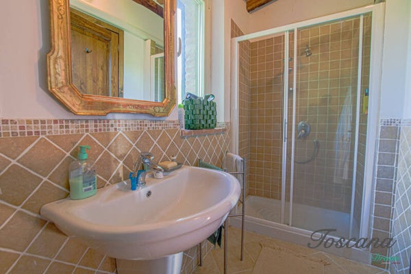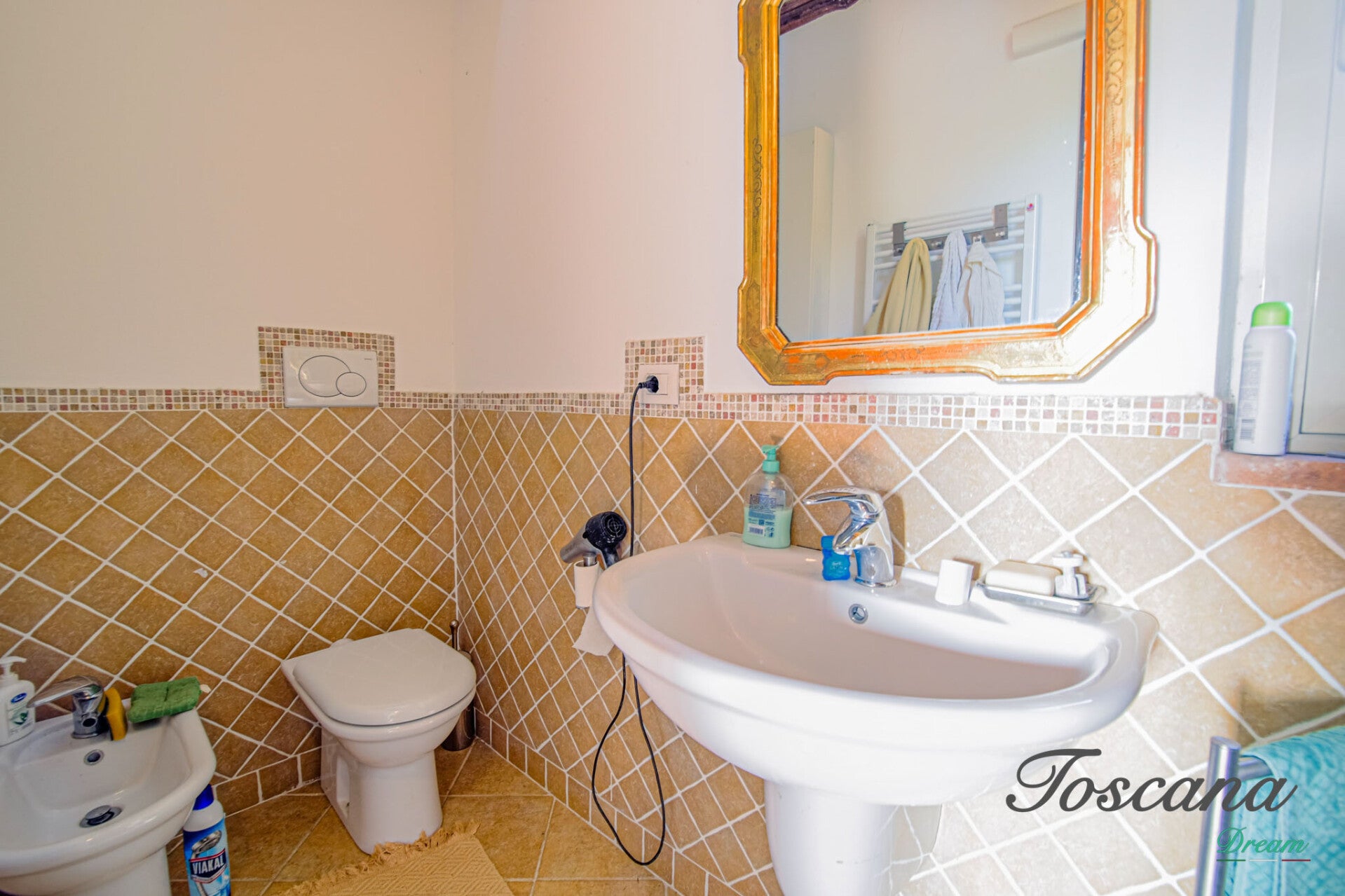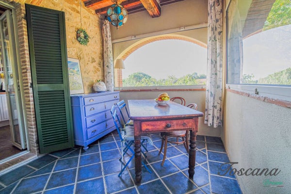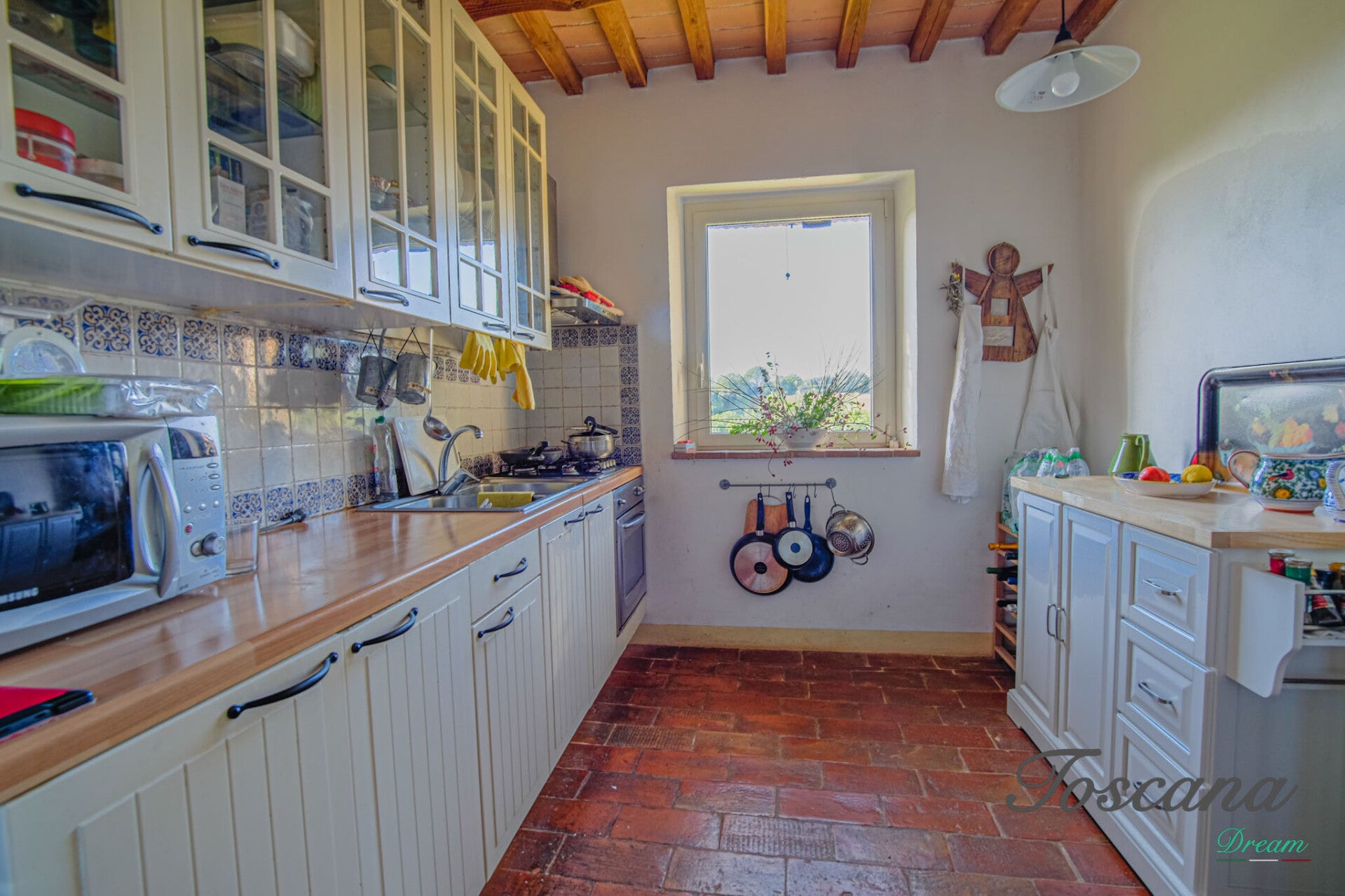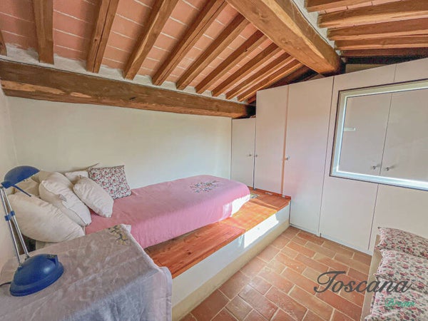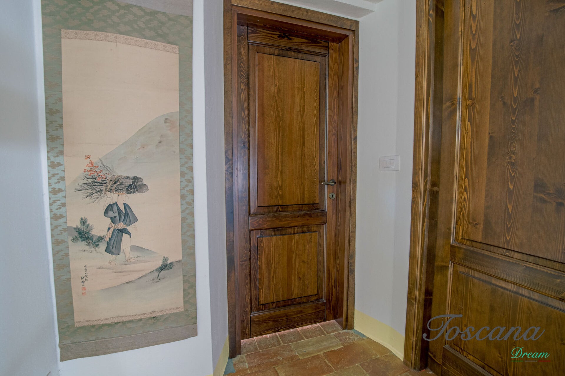 Casale al centro di un terreno di proprietà di oltre 1,5 ettari con la vegetazione tipica della regione (ulivi, querce, lecci, sugheri, pini, cipressi e giardino). L’edificio sorge sui resti di un posto di avvistamento longobardo del IX secolo del quale sono state mantenute le pietre a vista originali. Il restauro e l’ampliamento è stato effettuato nel 2004 e nel 2010 con materiali di pregio: travi di castagno, pavimenti in cotto a mano, nuovo tetto, serramenti con vetri a doppia camera, impianti elettro-idraulici moderni, riscaldamento autonomo con serbatoio GPL interrato, parziale condizionamento aria. Le strutture, sia quelle originali che quelle aggiunte, sono state soggette a consolidamento antisismico e isolamento termico secondo gli standard attuali. Insomma il fascino di un “casale d’epoca” con la solidità e la sicurezza di una casa moderna di gran qualità.