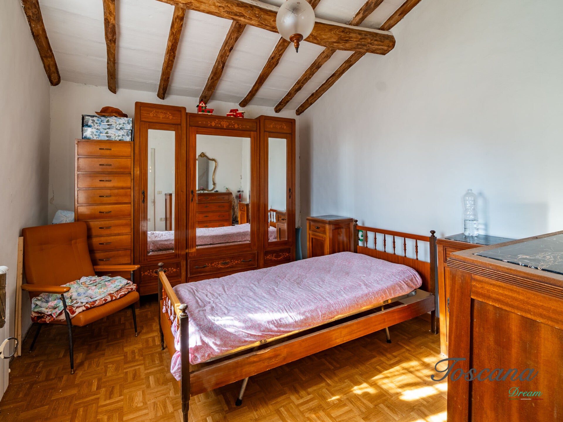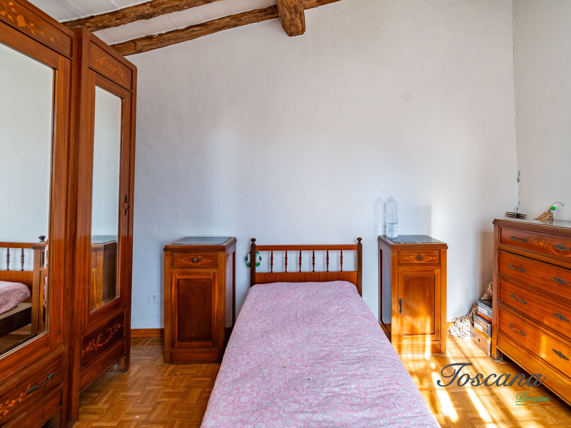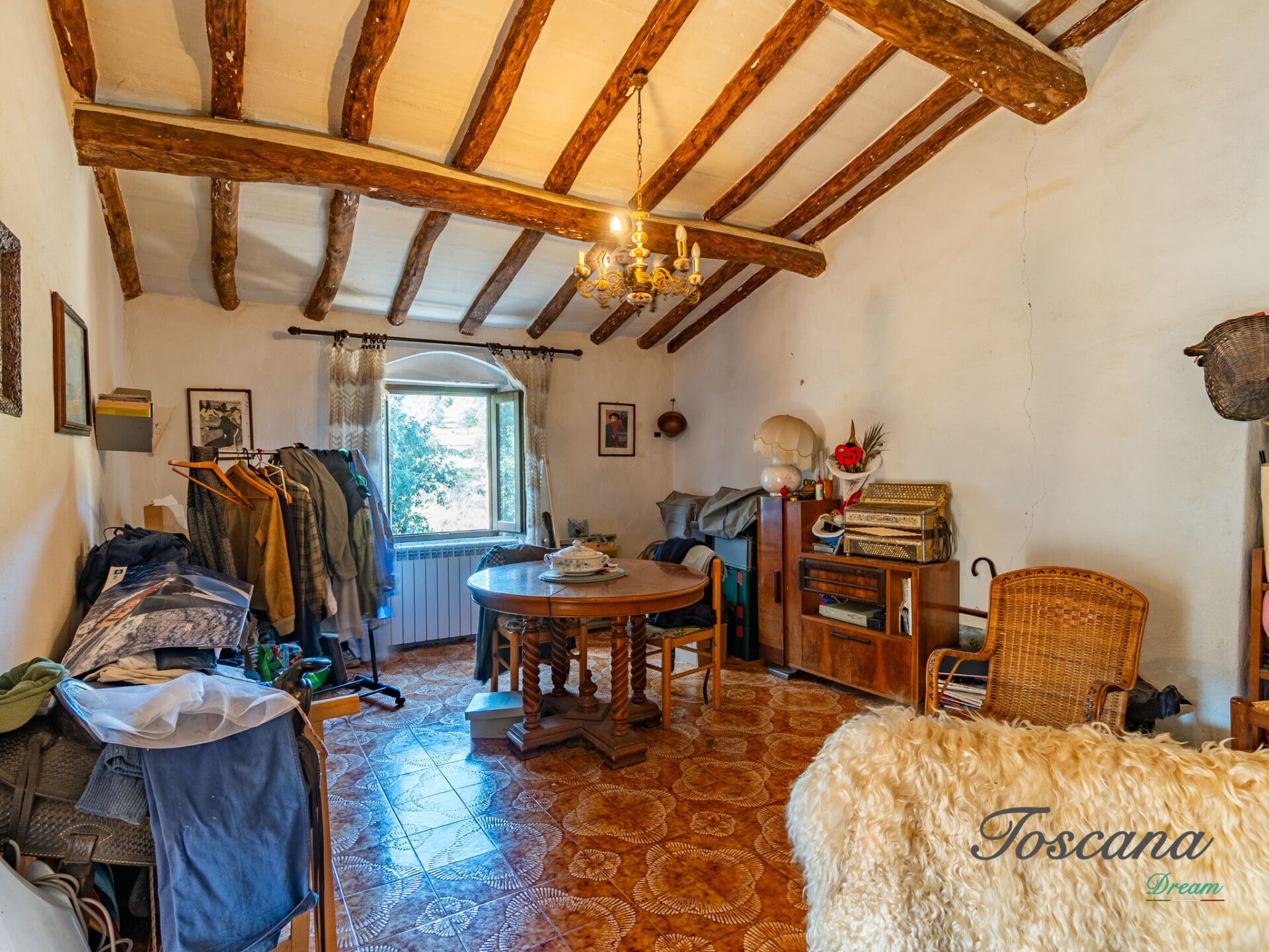 L’immobile mantiene intatto il carattere delle antiche dimore rurali toscane, con dettagli architettonici originali e ambienti spaziosi. Gli ampi magazzini presenti ampliano le possibilità d’uso della proprietà, mentre i 12 ettari di terreno circostante assicurano totale privacy e la libertà di sviluppare attività agricole, ricettive o di svago.