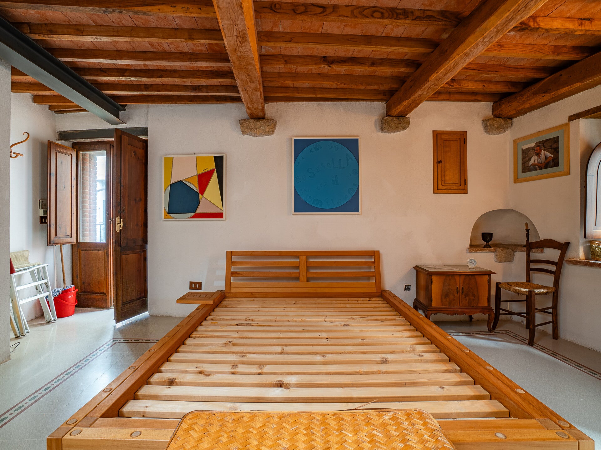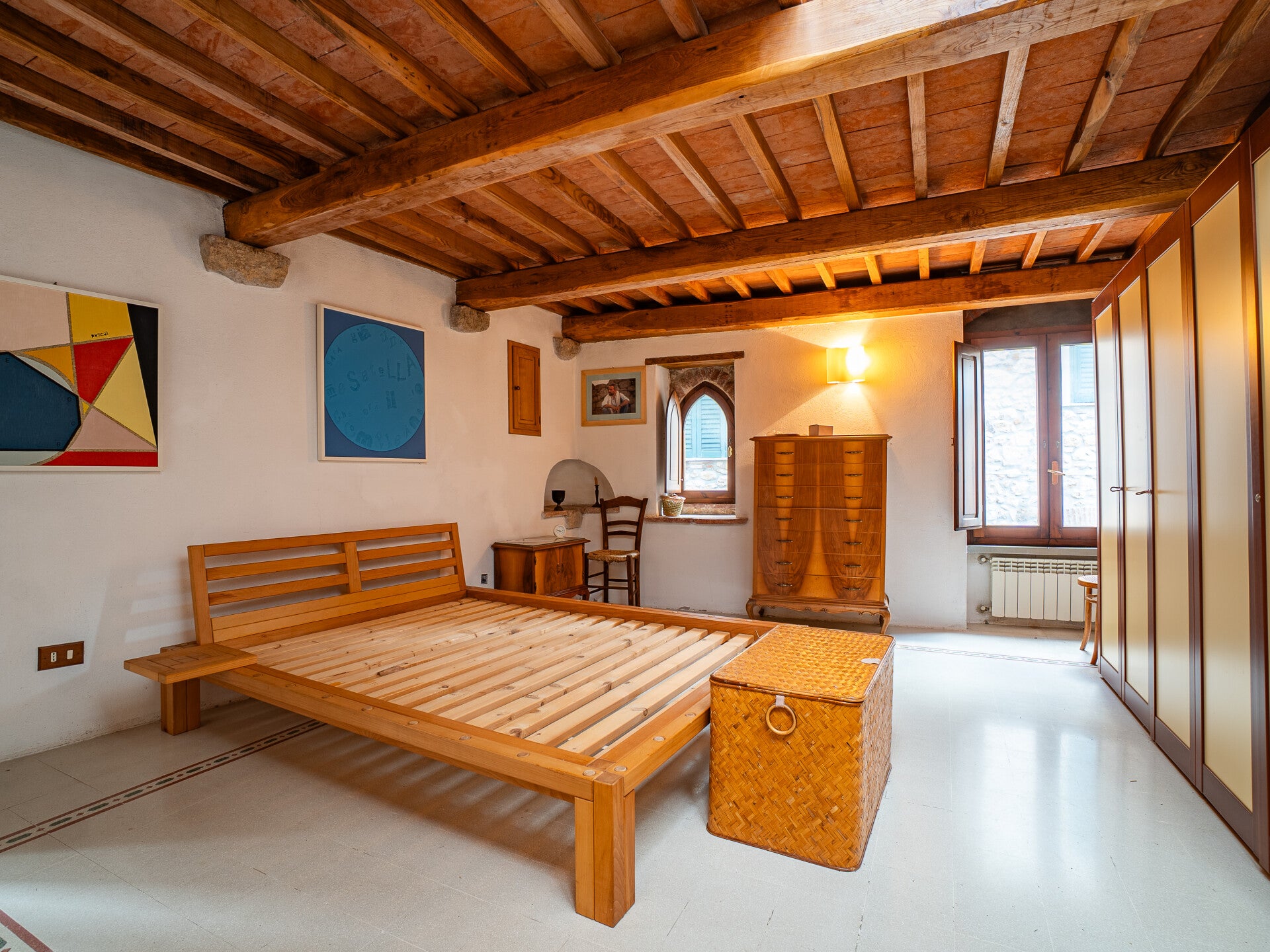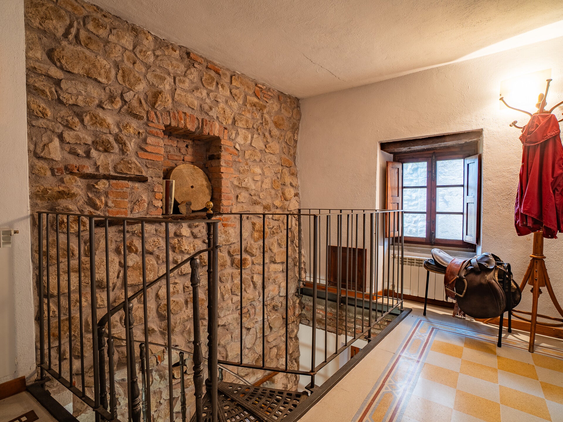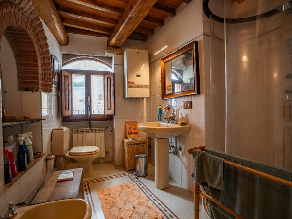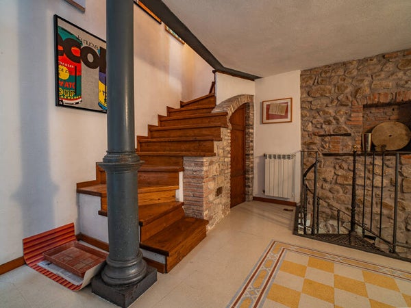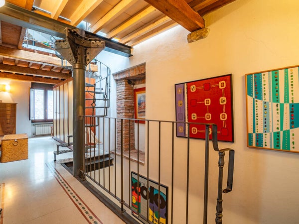 Ogni piano custodisce un’atmosfera diversa: ambienti raccolti e accoglienti ai livelli inferiori, ideali per la zona giorno e gli spazi conviviali, e salendo, stanze sempre più luminose, dove la luce filtra dalle finestre incorniciando tetti antichi e dettagli architettonici tipici toscani, come travi a vista e muri in pietra.