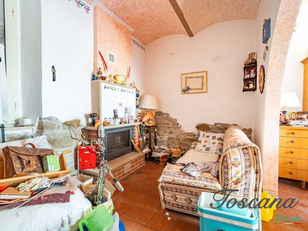 Piano Terra: ingresso su tinello con suggestivo caminetto, cucinotto separato e una prima camera da letto (utilizzabile anche come studio o salottino).